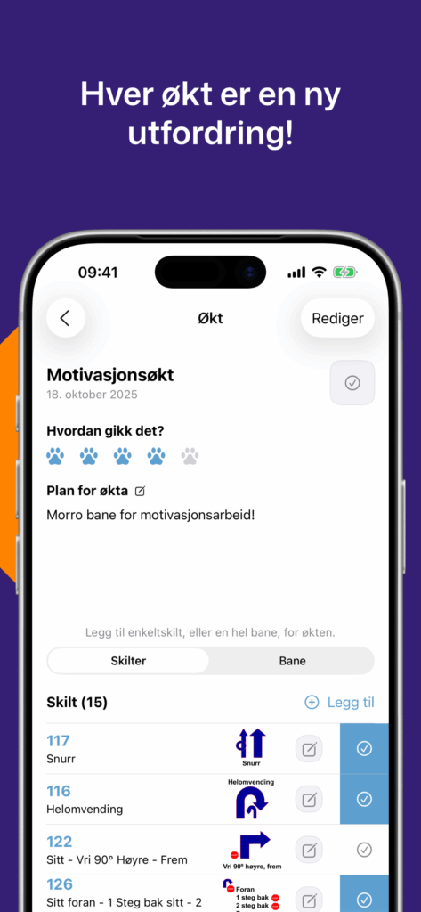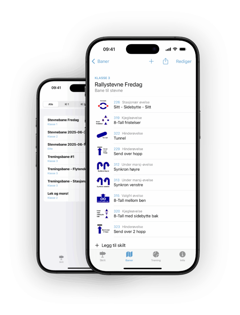 Planlegg din neste treningsbane, sett opp baner med skilt du ønsker å jobbe med, og send det til dine venner!